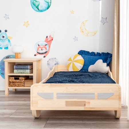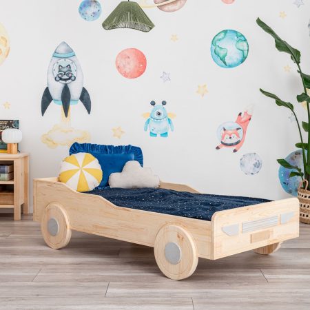Sängen i bilform har kanske en unik design, men vi vet att utseendet inte är allt – därför tillverkar vi våra sängar av massivt trä av hög kvalitet. I det här fallet rör det sig om skandinavisk furu. Vad gör detta trä så speciellt? Det växer mycket långsamt i naturen, vilket gör det tätare och mer slitstarkt. Resultatet är sängar som är exceptionellt stabila och hållbara. Dessutom är de dekorativa detaljerna tillverkade av naturligt ekträ.